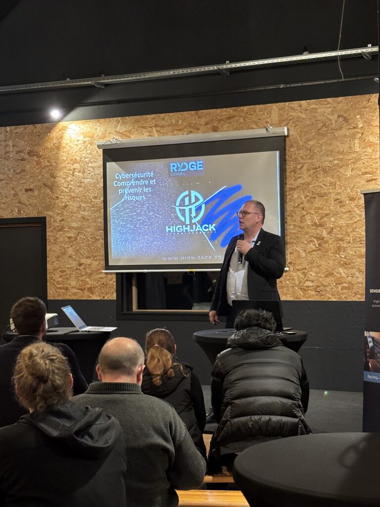 La cybersécurité est aujourd’hui un enjeu stratégique pour toutes les entreprises, quelle que soit leur taille ou leur secteur d’activité. Pour répondre à cette réalité, High Jack et RYDGE Conseil ont organisé une soirée de sensibilisation à la cybersécurité à Épinal ainsi qu'a Nancy réunissant dirigeants, responsables IT et collaborateurs autour d’échanges concrets et pédagogiques.